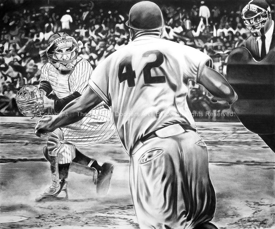 フォード投手の背後には3塁にロビンソン。この状況でも完璧な投球を見せたフォードでしたが、ベラに送球する際のわずかなアクションがロビンソンに1秒のアドバンテージをもたらしました。ロビンソンは本塁に滑り込み、審判のビル・サマーズが即座にセーフを宣告したため、ベラは激怒します。ドジャースは7試合でワールドシリーズを制し、ブルックリンで唯一のワールドシリーズ優勝を果たしました。